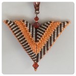 Three layers of warped squares make up The Phoenix pendant. The geometric patterns on the various layers invite you to look closer. What do you see? Some see a bird, others see a fox… it all depends on the color combinations!